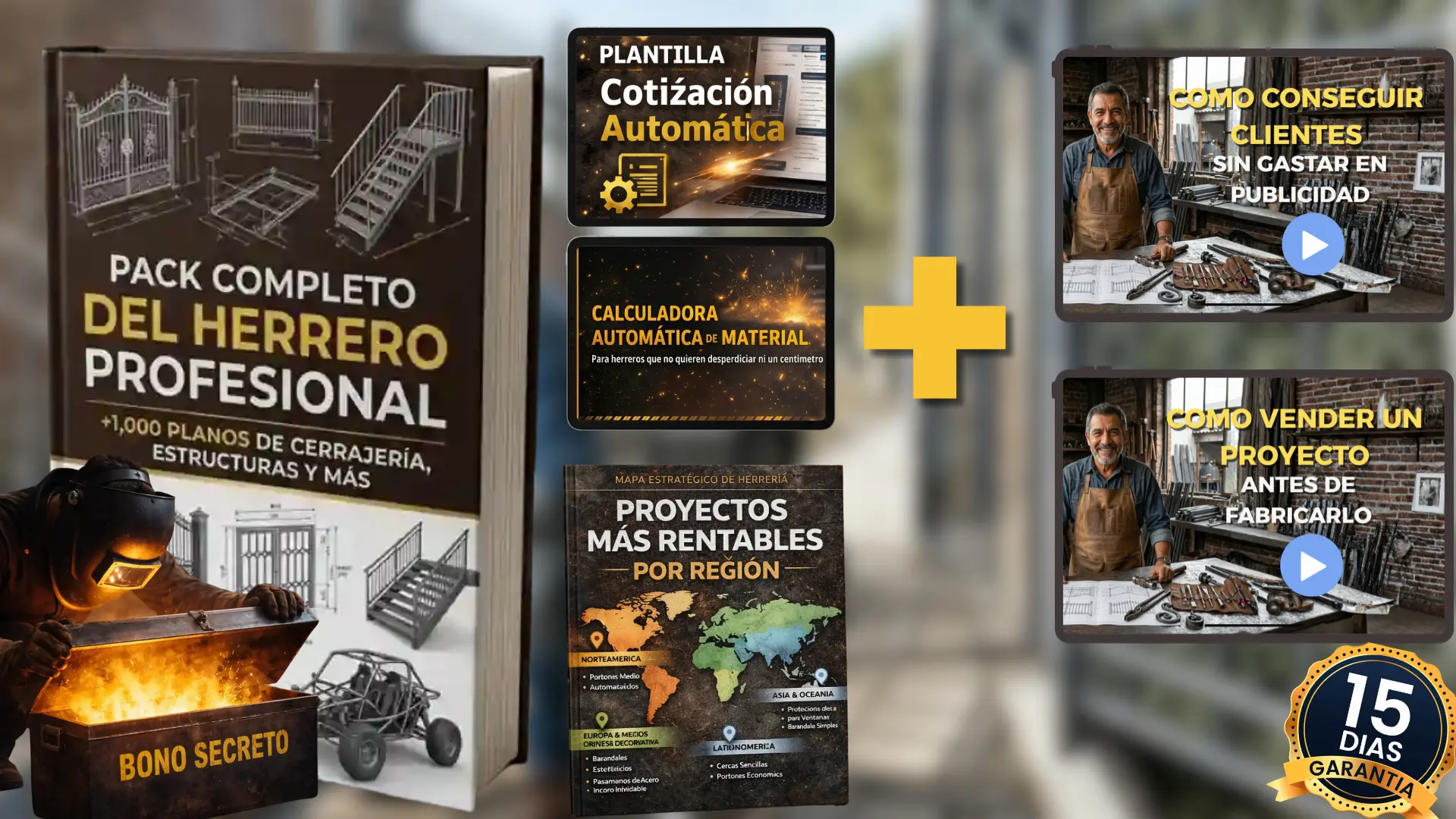 Más de 4,000 herreros ya usan este pack y lograron cerrar más presupuestos, reducir el desperdicio de material y presentarse ante sus clientes como profesionales de alto nivel — sin necesidad de estudiar diseño ni ingeniería.